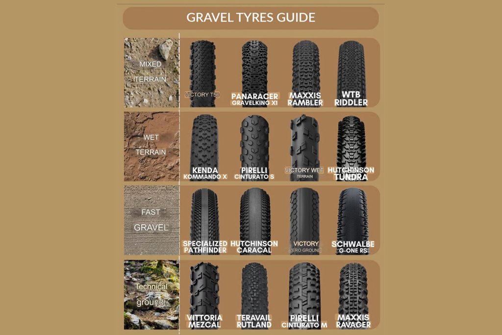 Here’s a helpful visual breakdown of various gravel tyres, categorised by the type of terrain they’re best suited for.